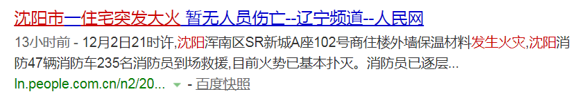 昨晚21时许,沈阳某高层住宅5楼外墙起火